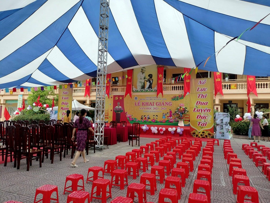 Công tác chuẩn bị cho Lễ khai giảng năm học 2023-2024 của trường Tiểu học Trần Quốc Toản đã hoàn tất.